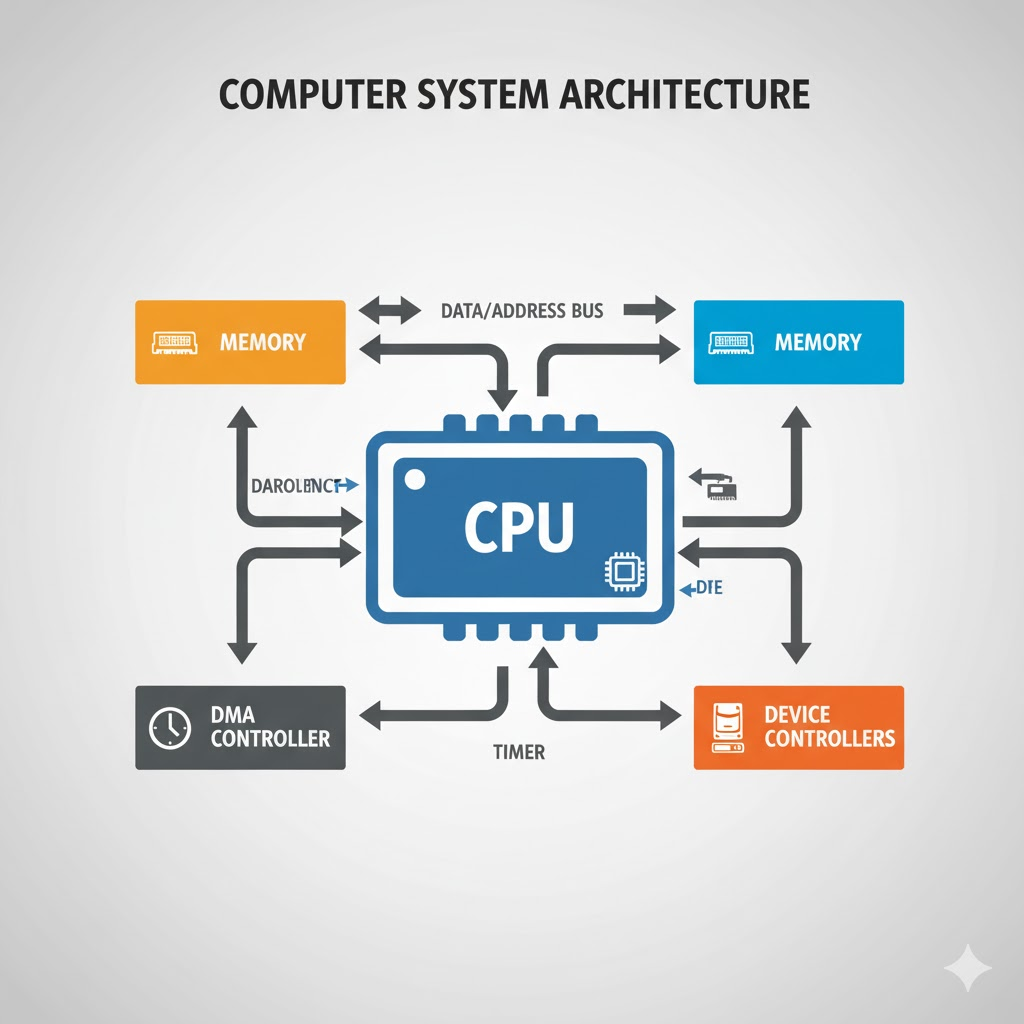컴퓨터는 CPU, DMA 컨트롤러, 메모리, 타이머, 디바이스 컨트롤러 등 여러 중요한 부품들로 조립되어 있습니다.
